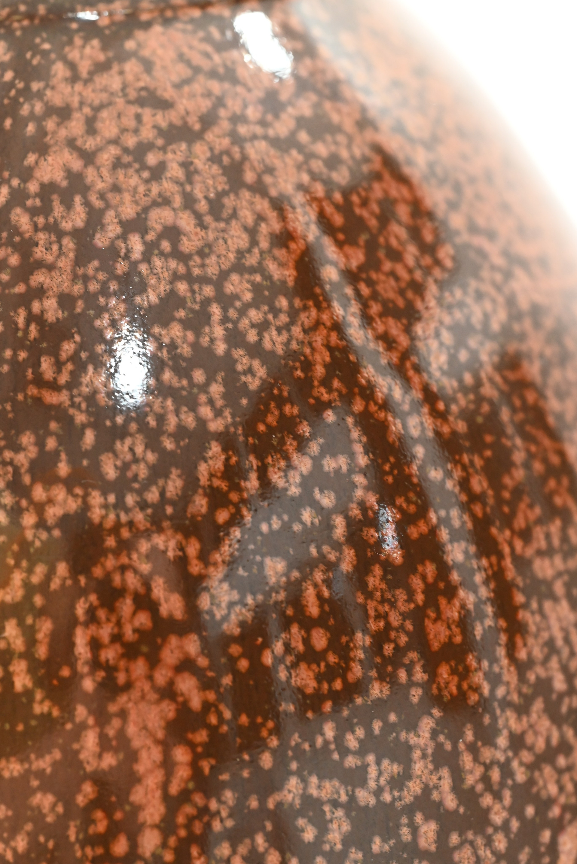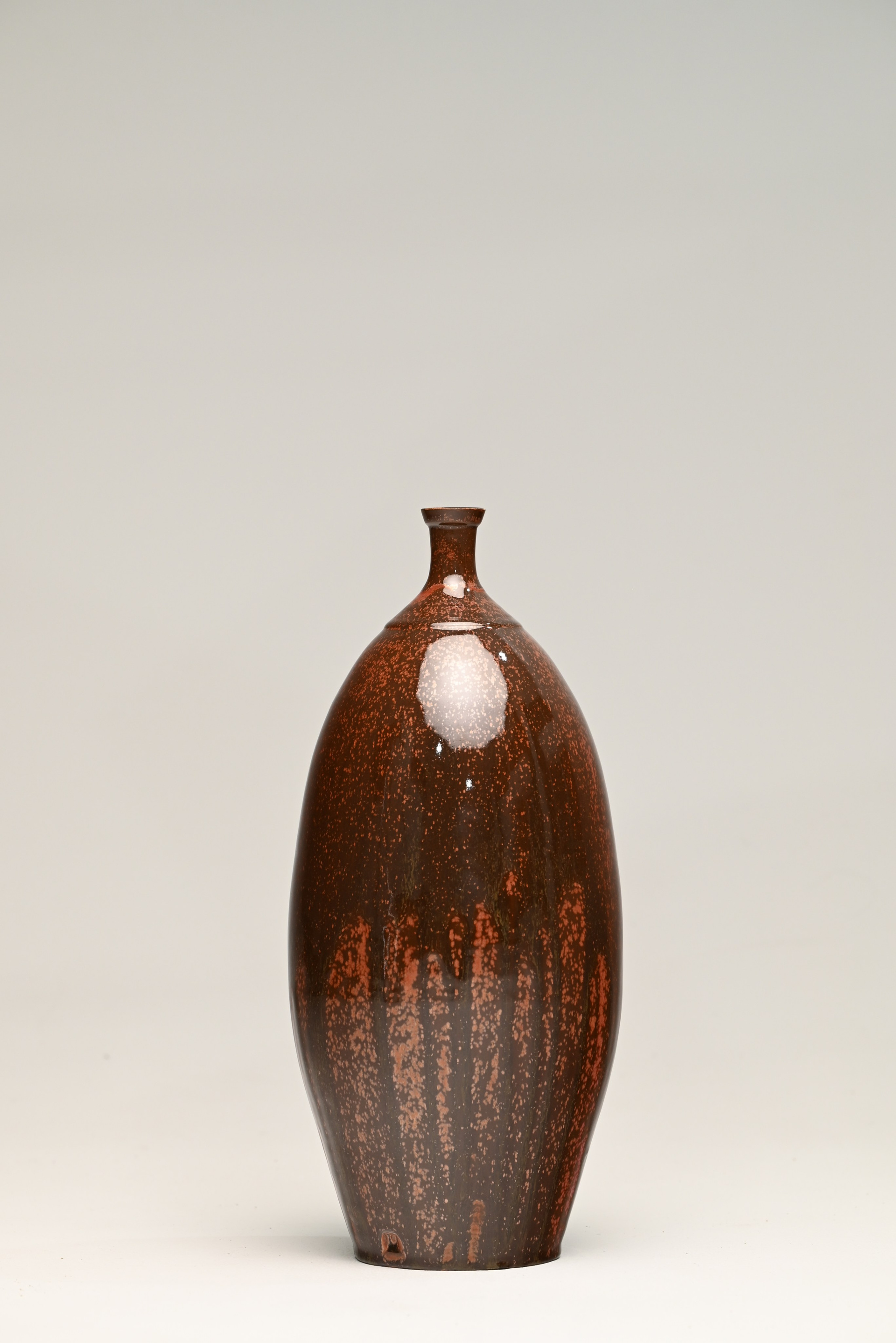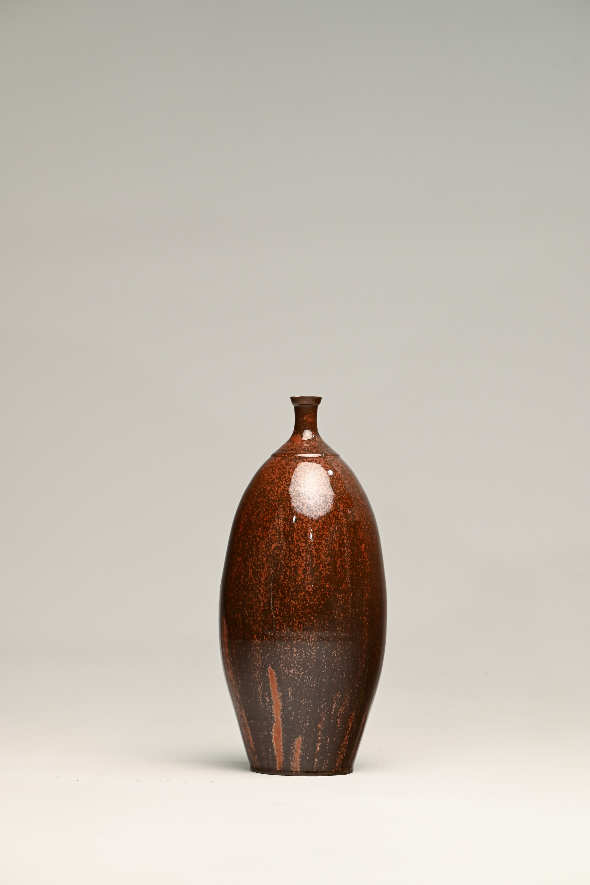 Каменная масса, глазурь. 44х19 см. Петрикор - землистый запах, который ощущается сразу после начала дождя. Коричневый цвет глазури напоминает землю, впервые напитанную влагой после засухи. Поверхность гладкая и обтекаемая, как если бы вещество само стремилось принять форму движения воды. В этом сосуде соединяются запах дождя, влажная теплая почва и мгновение, когда сухая материя вновь становится живой.