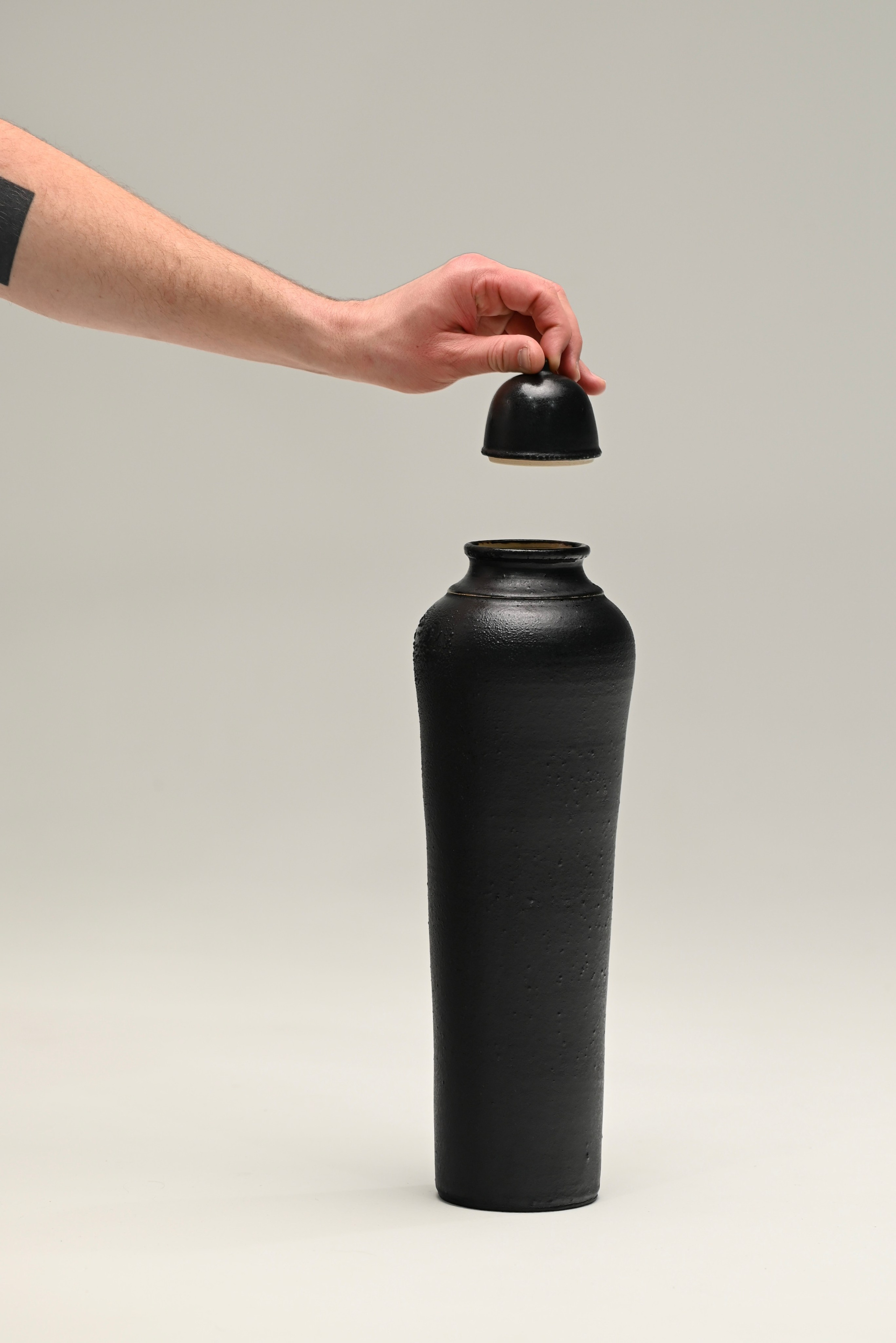 Каменная масса, черная авантюриновая глазурь. 44х11 см, 2025.